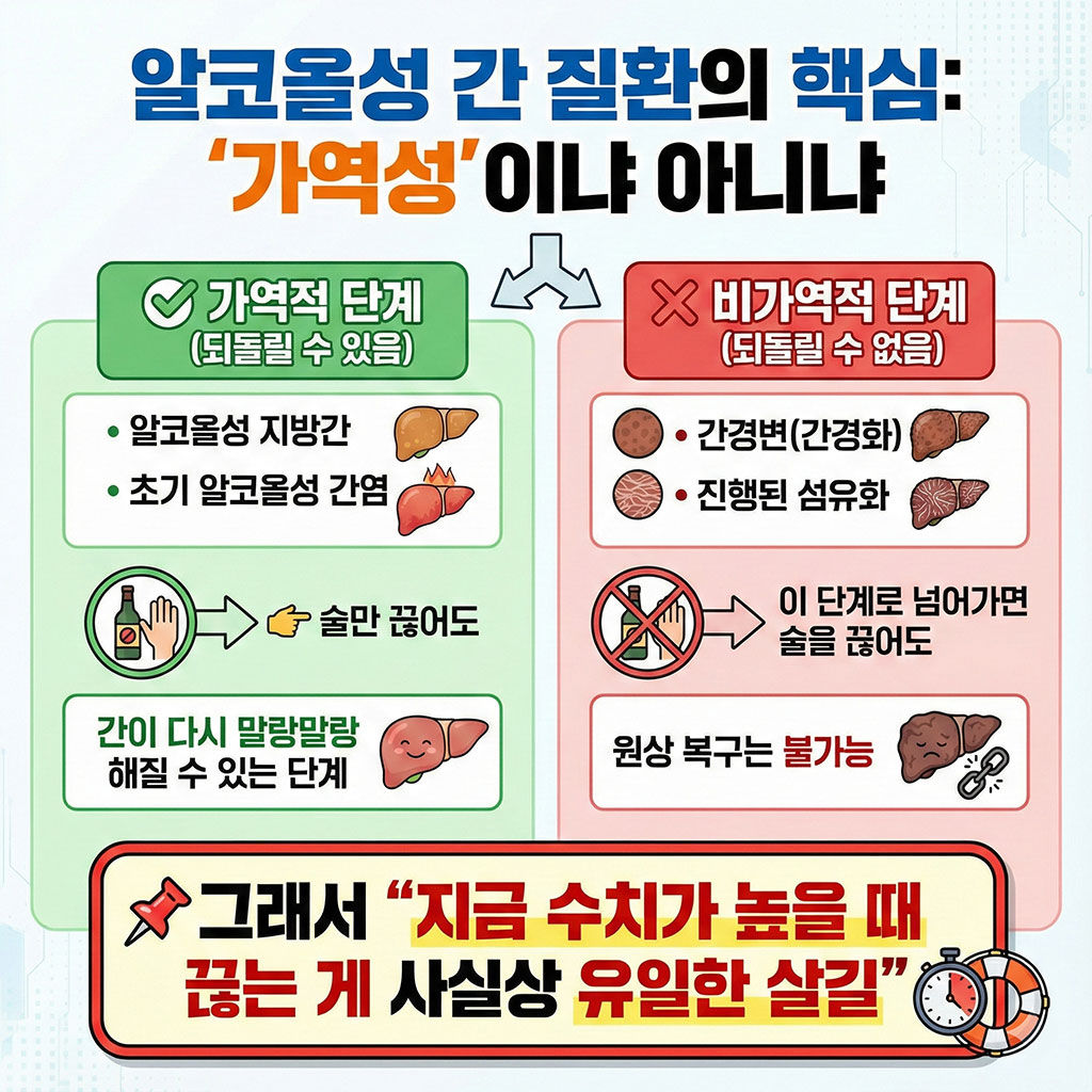알코올성 간 질환의 핵심: ‘가역성’이냐 아니냐