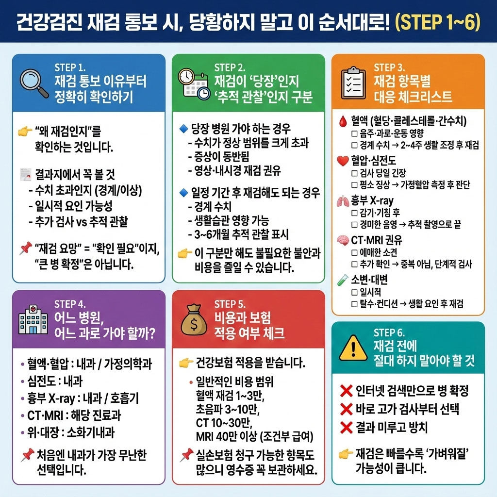 | 검사 종류 | 주로 가는 진료과 | 보험 적용 | 비용 범위(대략) | 설명 |